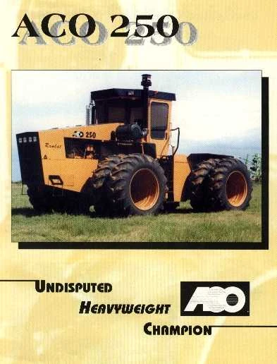 ACO Tractor Equipment was founded in 1986 in Hoopstad, Free State, South Africa by Alph Coetzer and his son Koos Coetzer. They were manufacturers of 4WD articulated tractors and a few MFWD tractors. After building about 450 tractors over the span of 13 years, in 1999 the company and designs were sold to Basil Botha. They are known for producing the world’s third most powerful tractor, the ACO 600 [1]