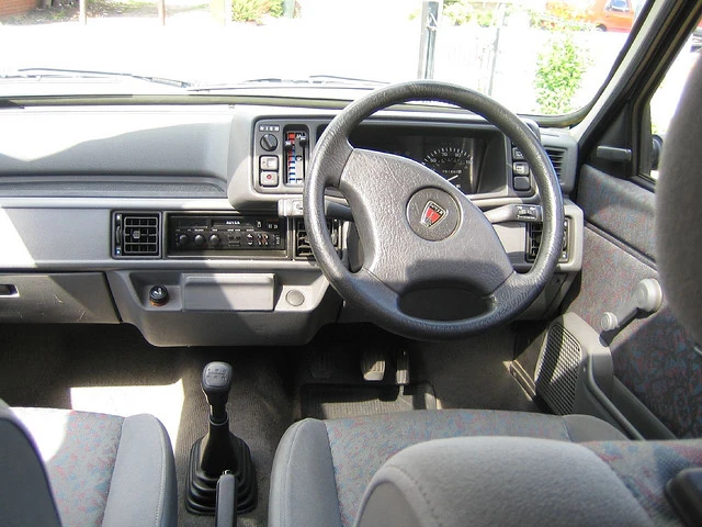 The interior of a 1994 Rover Metro Rio.
