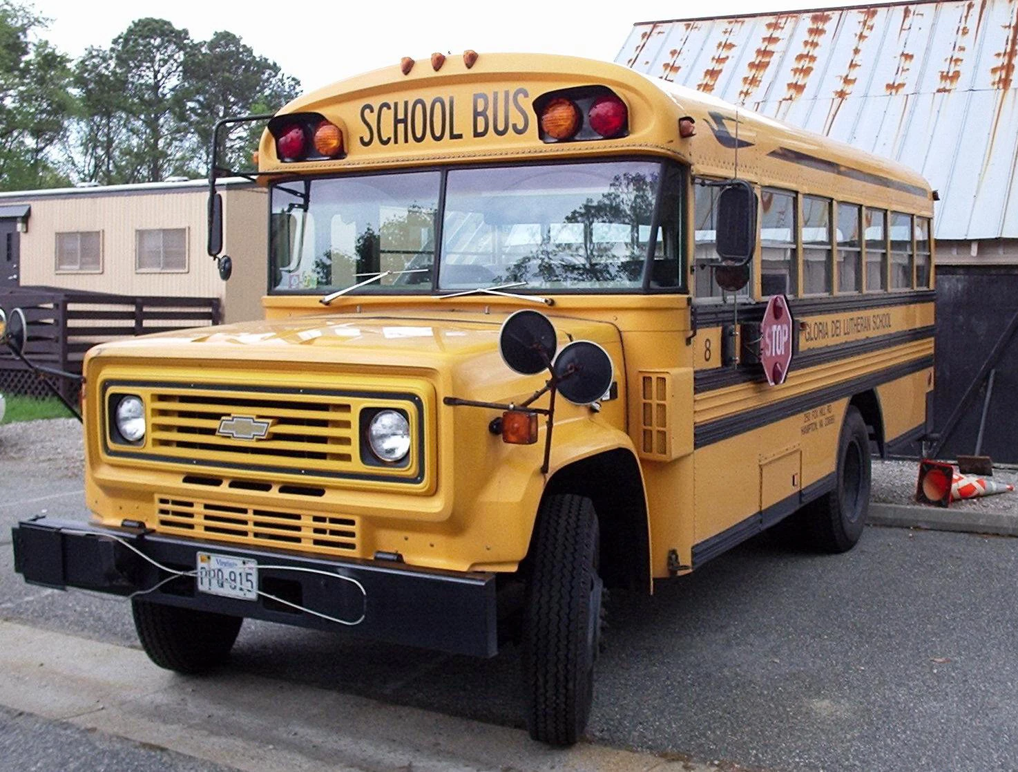 A 1980s Chevrolet B-Series with a Blue Bird Conventional body