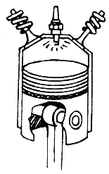 Illustration of an engine cylinder with a cross-section view of the piston, connecting rod, valves and spark plug.