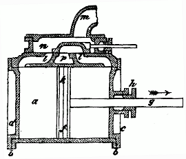 Heat engines, including Stirling engines, are sealed machines using pistons within cylinders to transfer energy from a heat source to a colder reservoir, often using steam or another gas as the working substance. (See Carnot cycle.) The first illustration depicts a longitudinal section of a cylinder in a steam engine. The sliding part at the bottom is the piston, and the upper sliding part is a distribution valve (in this case of the D slide valve type) that directs steam alternately into either end of the cylinder. Refrigerators and air conditioners are heat engines driven in reverse cycle as pumps.