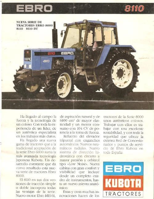 | Ebro-Kubota 8110 | 104 hp (78 kW) | Ebro |