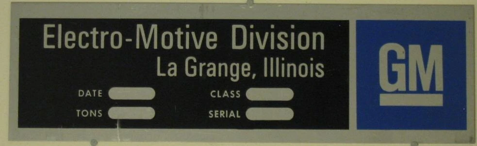 EMD builder's plate that was in use from the late 1960s to the mid 1980s.