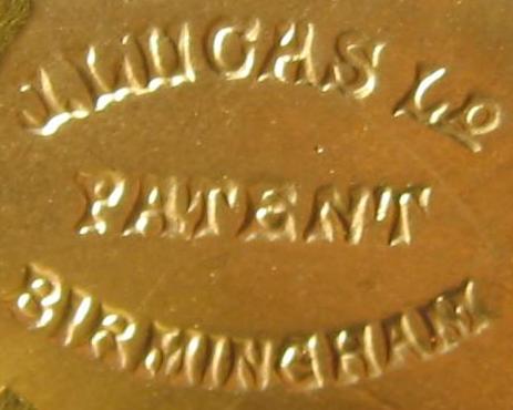 Stamp on military vehicle lamp - "J.Lucas LD patent Birmingham". WWII time.