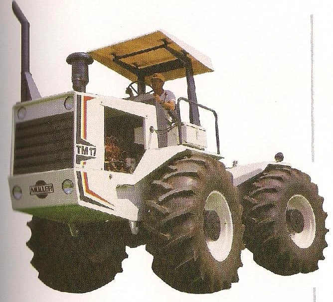 Müller tractors were 4WD articulated tractors built in Brazil. The company was founded in 1956 by a German immigrant, Mr. Müller. They continued to build tractors until 2002, when the company was sold to Proton Primus of Brazil. They also manufacture CompactorRollers.