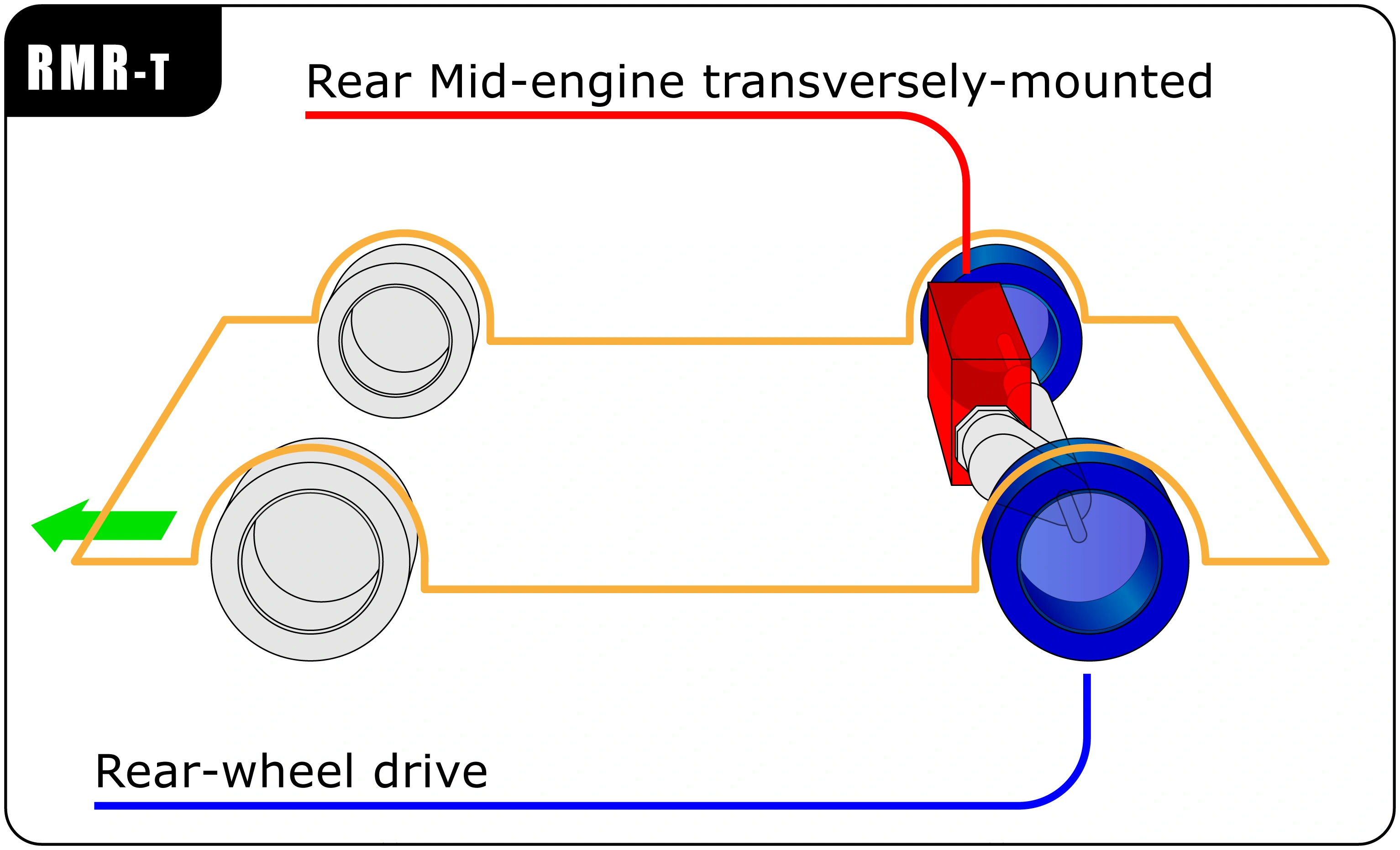 Rear mid-engine transversely-mounted, rear-wheel drive layout[]