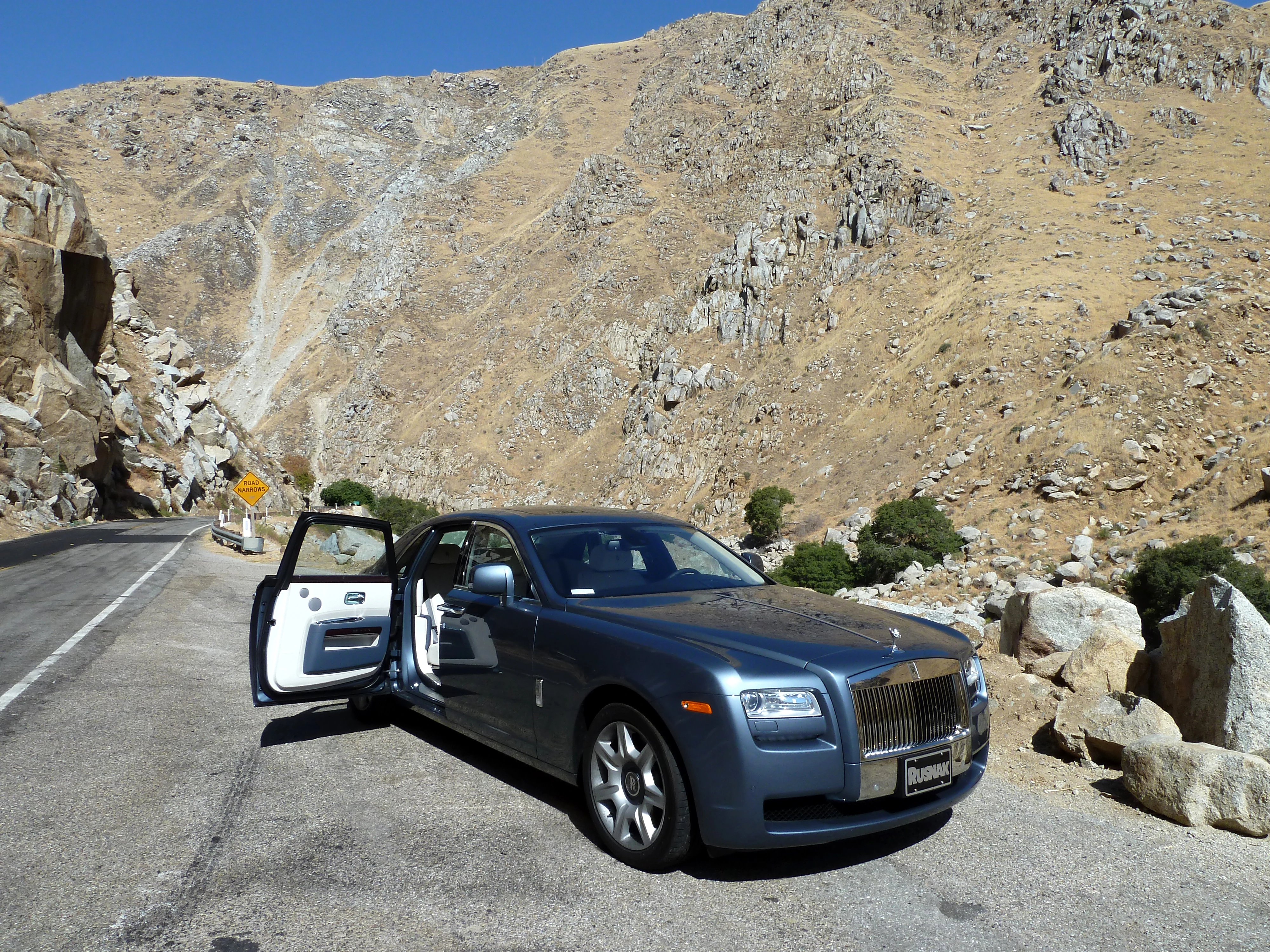 An open rear suicide door on a Rolls-Royce Ghost