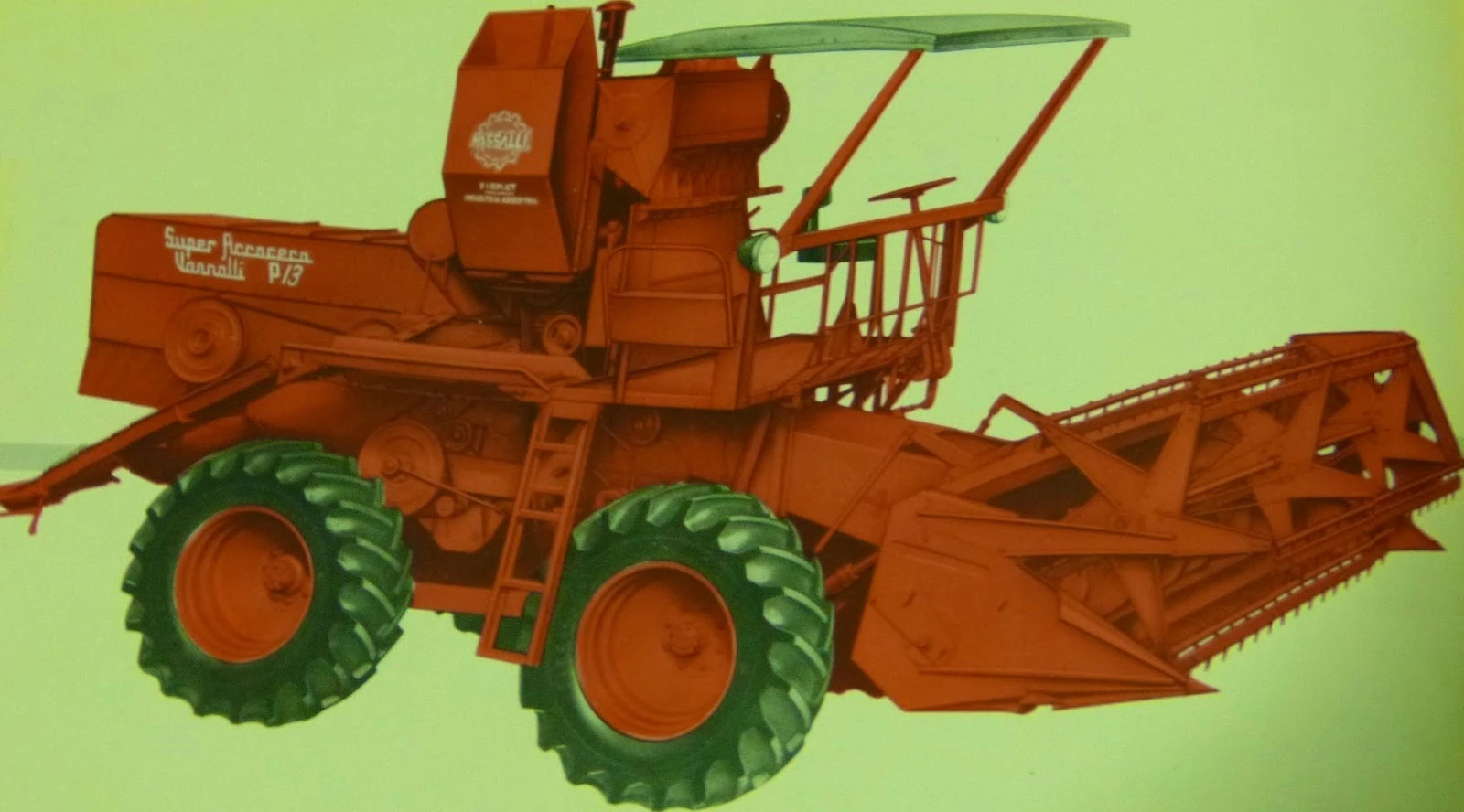 Vassalli Fabril S.A. is a company created by Roque Vassalli in 1949. It was originally called Vassalli Roque S.A. was established in Firmat, Santa Fe, Argentina, and is dedicated to the manufacture of combine harvesters. Starting as a metallurgical establishment, Vassalli began making the first batch of comine harvesting, capable of simultaneous operation in a single collection, cutting, shelling and bagging the grain, which was to revolutionize agriculture worldwide. After a few years had passed, the first model manufactured completely at the plant in Firmat, the "Super Vassalli", was introduced and made Vassalli's founder proud.